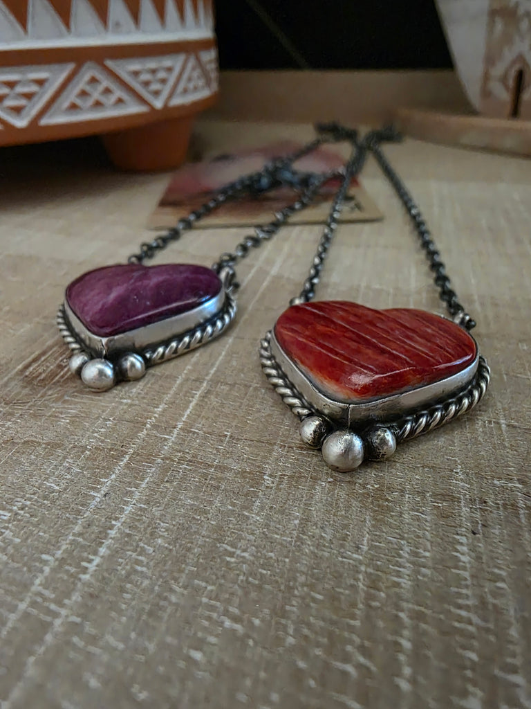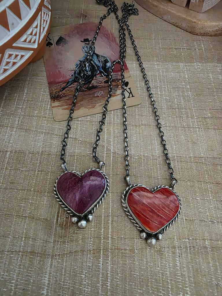 CHASSITY BELONE SPINY OYSTER STONE HEART NECKLACE