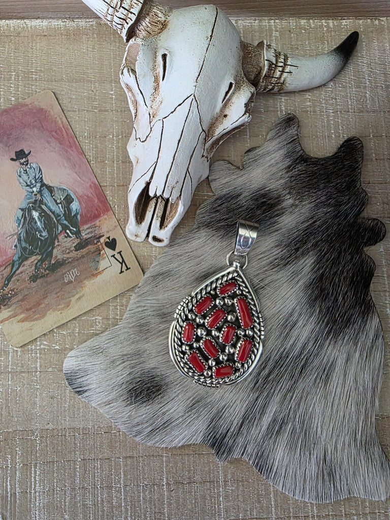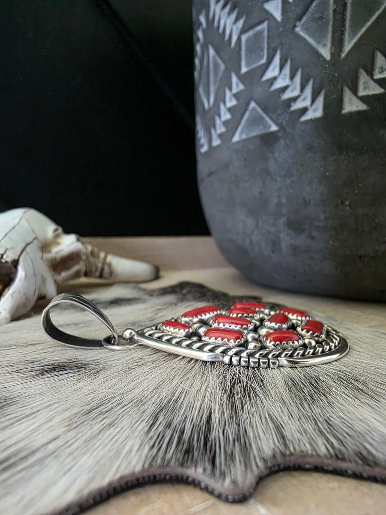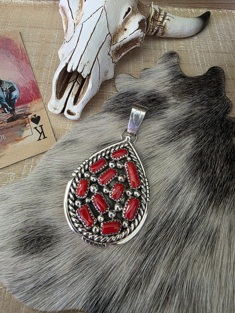 CHESTER CHARLEY CORAL STONE CLUSTER PENDANT