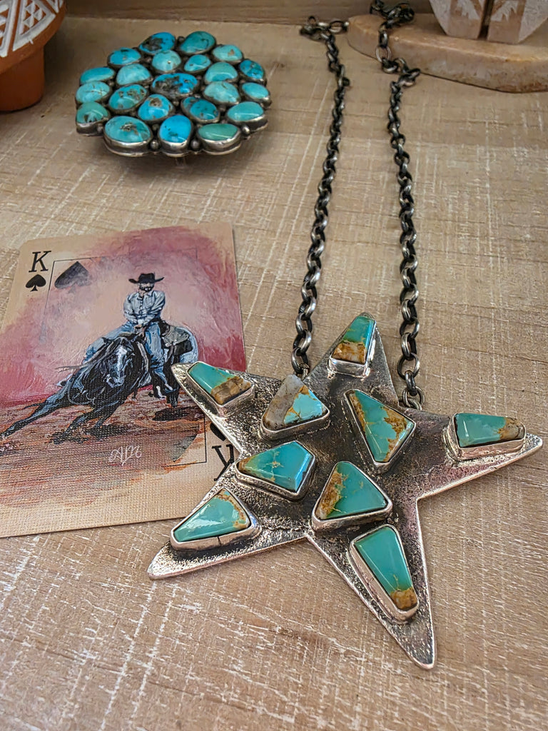 JUDE CANDELARIA ZUNI KINGMAN TURQUOISE STAR NECKLACE