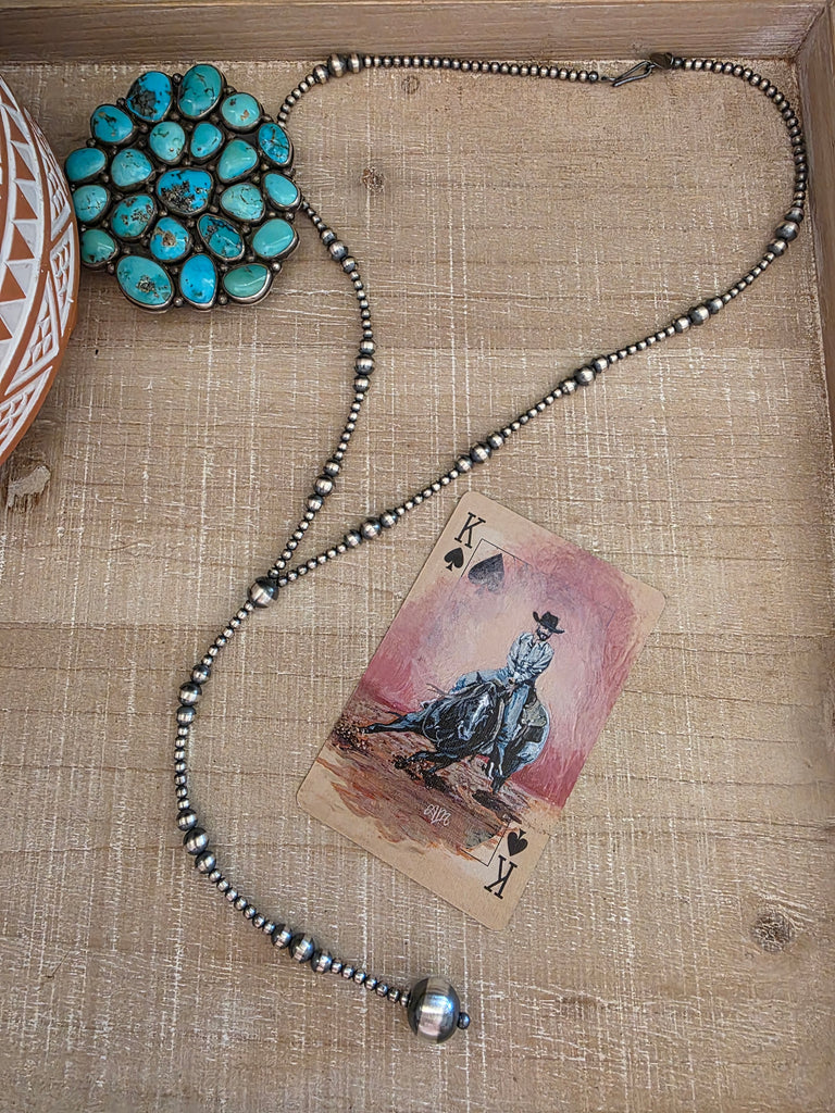 MULTI BEAD STERLING SILVER NAVAJO PEARL LARIAT NECKLACE