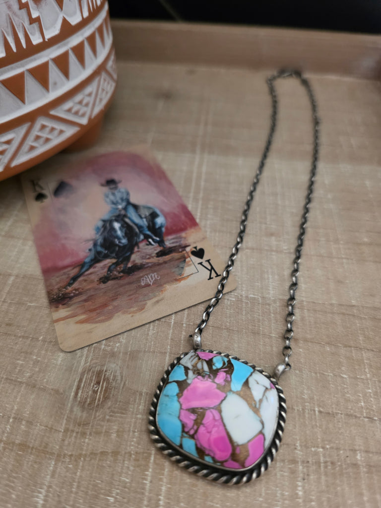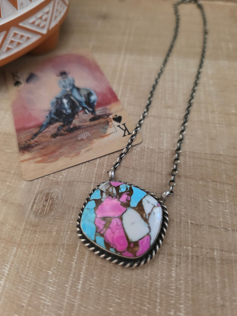 THE AUGUSTINE COTTON CANDY LARGE SQUARE BAR NECKLACE